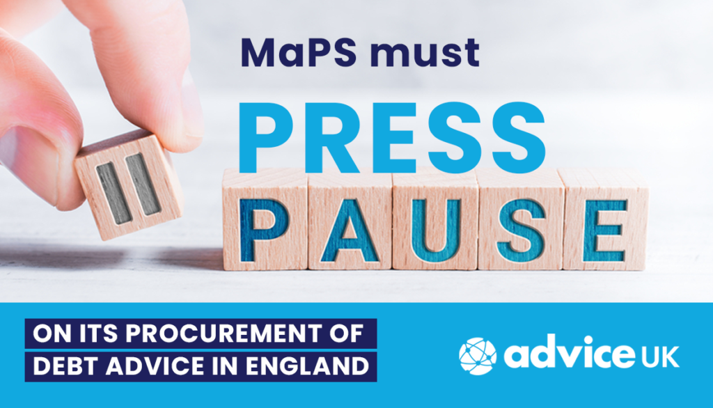 AdviceUK’s CEO Steve Johnson has written to the CEO of the Money and Pensions Service (MaPS), Caroline Siarkiewicz, to ask her to pause MaPS’s procurement process for debt advice in England.